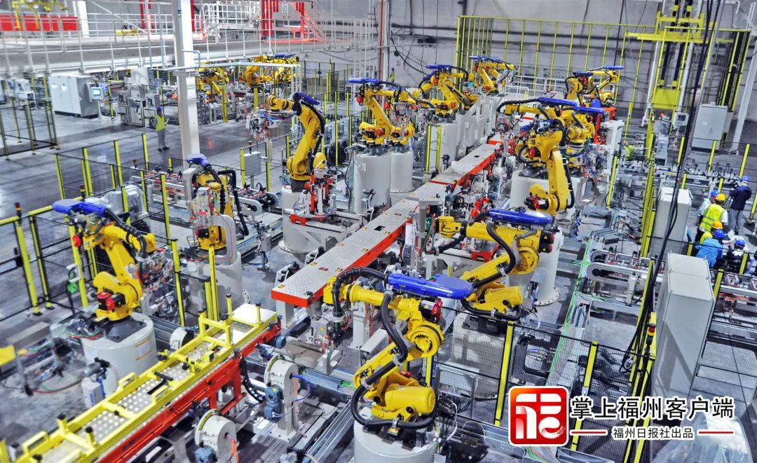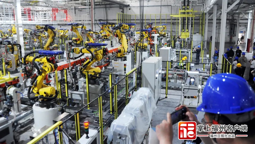 走进东南(福建)汽车工业有限公司,焊装车间258台红黄配色的机器人分布在焊装生产线的各个点位,十分壮观。