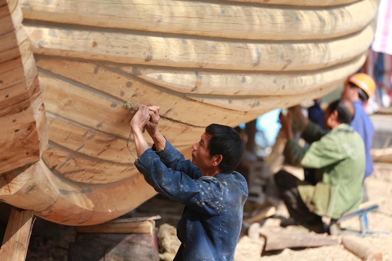 旧时溪潭镇沙岩村造木船场景