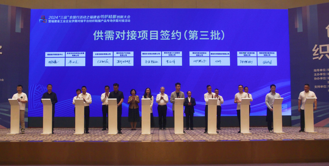 活动上,莆田市工信局向参会企业推介当地纺织鞋服产业投资环境。东龙针纺、长源纺织、石狮大帝、双驰等代表企业对创新产品进行推介,采购商亚马逊跨境运营、香港利泰等发布采购需求,億裕香港REGATTA、英国ECCO鞋业等30余家省外采购商、贸易商,赛维时代等9家亚马逊头部卖家现场对接选货。现场促成永荣锦江、旭源纺织、华源工贸、永生鞋业等30家企业、科研机构达成供需对接项目15个,签约金额约12亿元。