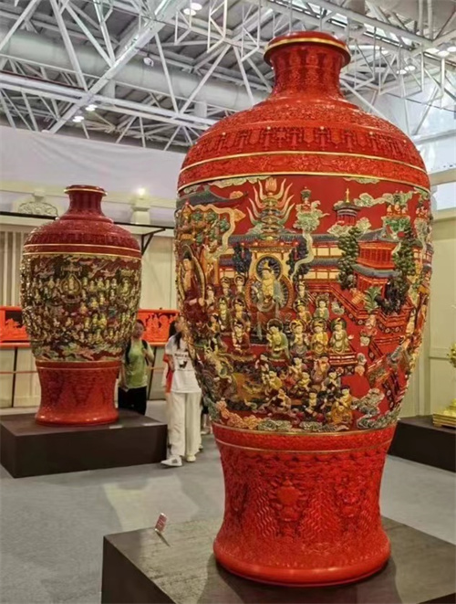 福州 袁师永 严登碧 汪存威 徐志娟《净土文化对瓶》(漆艺)