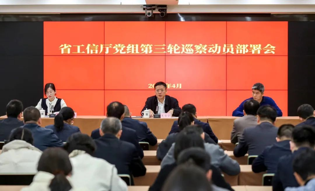 4月9日,省工信厅党组召开第三轮巡察动员部署会,深入学习贯彻习近平总书记关于党的自我革命的重要思想和关于巡视工作的重要论述,贯彻落实二十届中央纪委三次全会和省纪委十一届四次全会、全省巡视巡察工作会议精神,部署厅党组第三轮巡察工作。受厅党组书记、厅长、巡察工作领导小组组长翁玉耀委托,厅党组成员、副厅长、一级巡视员、巡察工作领导小组副组长吴添富出席会议并作动员讲话。