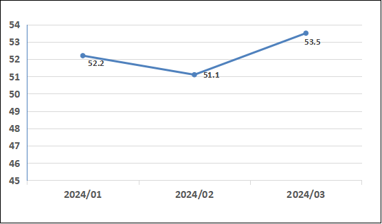 图1 2024年1-3月物流业景气指数(LPI)走势图