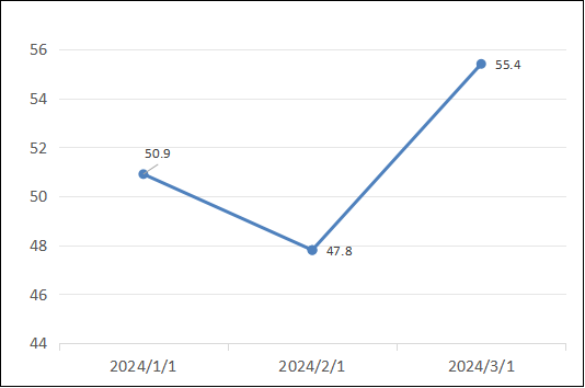 图2 2024年1-3月主要服务于制造业的物流景气指数走势图