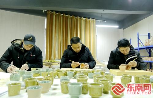 福建畅宏工艺品有限公司员工正在制作青瓷