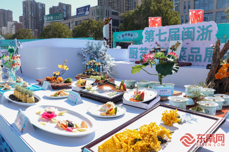 闽浙厨艺交流展示的精美菜品。