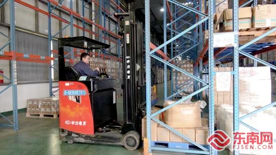 2月18日是春节长假之后首个工作日,青蛙王子(福建)婴童护理用品有限公司的仓库里一派繁忙景象,装运货物的叉车来回穿梭,一件件香水产品正被装运到货车上,加急运输送往厦门港出口美国。
