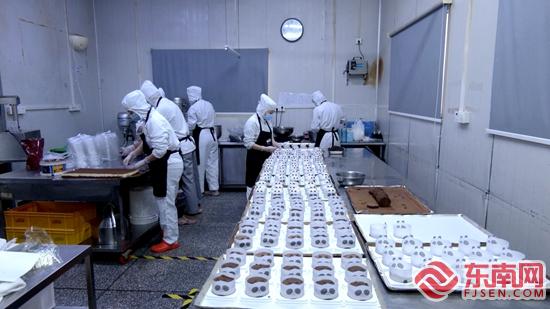 漳州市向阳坊食品有限公司的工人们加工生产面包、蛋糕