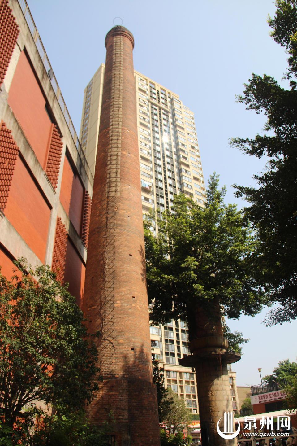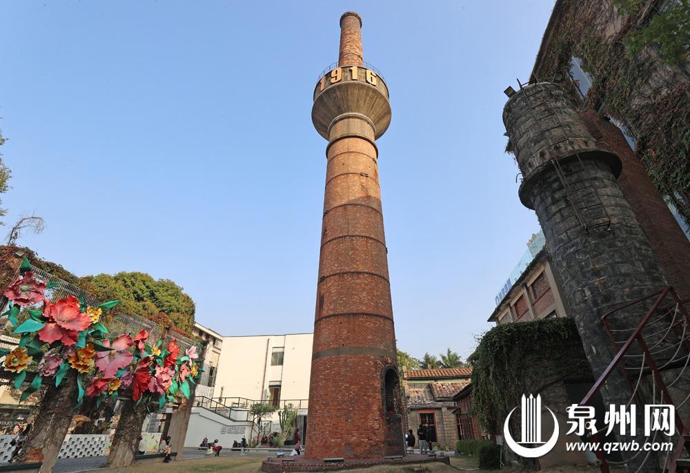 在新门街龙头山的源和1916创意产业园内,与蜜饯腌制池一同被保留下来的,还有标志着工厂动力的大烟囱。其始建于1958年,高20余米。烟囱外墙至今仍保留着当初被浓烟熏黑的痕迹,是泉州工业发展的重要见证。