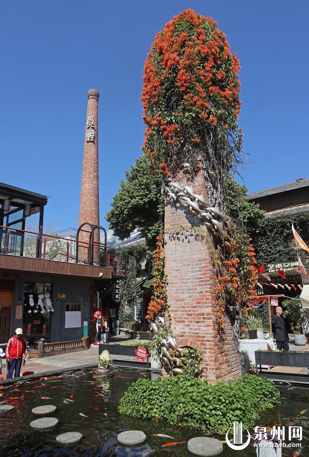20世纪90年代,纸品厂迁出,厂区逐渐荒废。直到2018年年底,在遵循“修旧如旧”的原则下,旧厂房被改造为觅鲤文化创意园。园区的命名颇具深意。“鲤”源自泉州的别称“鲤城”,“觅鲤”寓意着在现代化的城市中寻觅古城的历史脉络。而这座高大的烟囱,正是寻觅之旅中最直观的“路标”。它与园内的衍派墙、爱情天梯等新景观和谐共生,使工业记忆完美融入了文艺范儿,成为年轻人喜爱的打卡点。