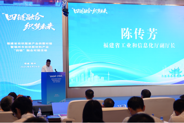 为贯彻落实工信部推动纺织工业数字化转型和提质升级的有关部署以及省委、省政府相关工作要求,促进创新链、产业链、资金链、人才链深度融合,推动福州市纺织产业和县域重点产业链高质量发展,提升我省现代纺织服装产业竞争力,6月24日,福建省纺织服装产业供需对接暨福州市纺织新材料产业“四链”融合对接活动在福州市长乐区举办。本次活动由福州市工业和信息化局、长乐区人民政府、兴业银行福州分行联合主办,福建省纺织服装行业协会承办,吸引了新华源、长源、海天等省内外重点纺织服装企业负责人,东华大学、闽江学院、泉州师范学院等高校专家,以及行业商协会、金融机构等代表近200人参加。工信部消费品工业司二级巡视员邓小丁、中国纺织工业联合会副会长徐迎新、中国电子信息产业研究院副总工程师刘权、福建省工信厅副厅长陈传芳等出席活动。